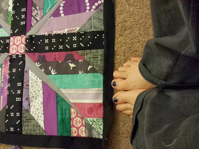 Radiant Orchid Challenge using the Intrepid Thread's leaf tutorial. Can't show any more just yet! And yes, I realize I really need to paint my toenails. It goes like this: paint toenails or work on the quilt. You tell me what's more important ;)