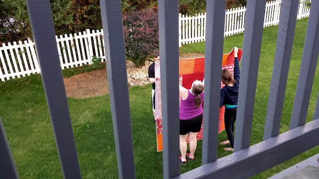 ReplyDeleteThose outtakes are great! That quilt is a beautiful gift! I'm sure the recipient will love it.