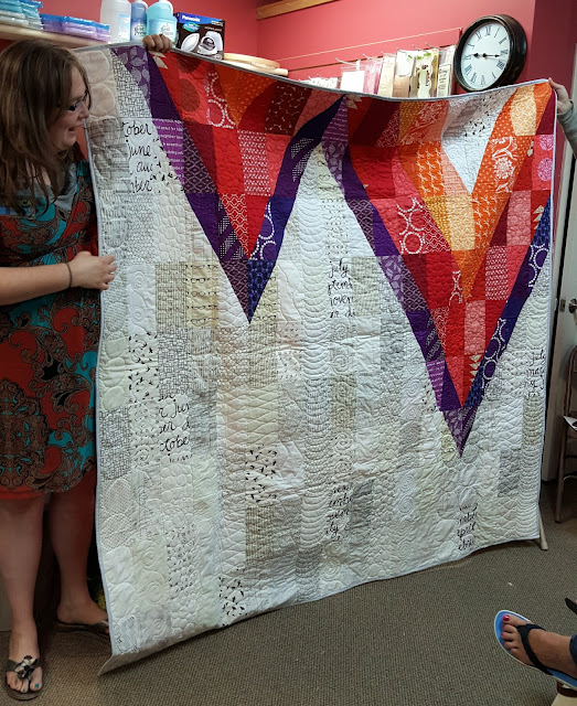 I was especially drawn in by the negative space available for quilting (as my readers know, quilting on my home machine is my favorite part of the whole process). I'm sure the quilt would look beautiful with any quilting; it's just one of those striking designs.