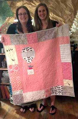 I know you want to see the baby's picture (used with permission of course)! It's like she's waving "hi!" :D. The next picture is when I surprised Sarah with the gift. It's so satisfying to gift quilts to people who really, clearly appreciate and use them!! <3 Luckily, I got to meet the little cutie that night. Have I mentioned how much I LOVE babies? Because I do (and even more when they are babies of people I adore).