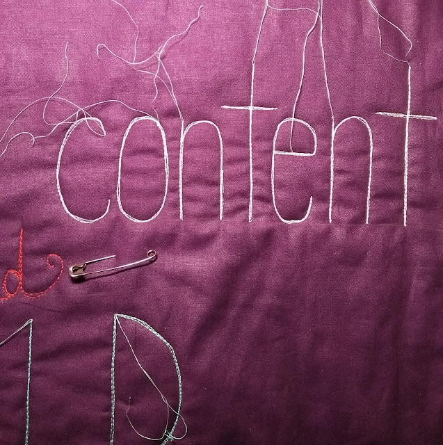 The quilt is half done now, after writing 1 encapsulating phrase each day for three weeks (has it really been three weeks since I started and since the election?)! It helps that I've been filling in the surrounding negative space every weekend. The project will take me right past my birthday on December 17 - which was completely unintentional, but I'm glad of it!