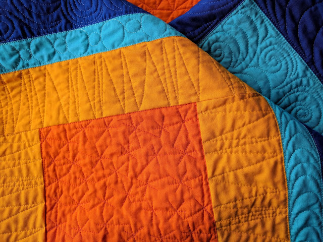 That royal blue is definitely swoon-worthy! I love how solids allow the quilting to shine and how you explored rounding verses straight / linear motifs in the different colors.
