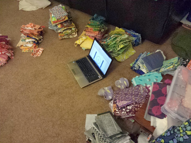 I sat down last night with all the piles around me (excluding precuts and all my Anna Maria Horner fabric) and a bunch of episodes of Girls (I'm in the second season)... it took about 2 hours to get everything all in shape.