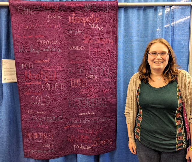 ReplyDeleteI do all of my quilt show visiting vicariously through posts like this one, so thanks for sharing! I love the MQX shows the back of the quilts. I always want to see the back of a quilt, and to show the backs of my quilts to people too :) It's fun to see pictures of you with your quilts hanging in the show.