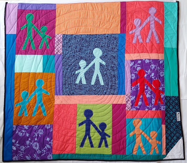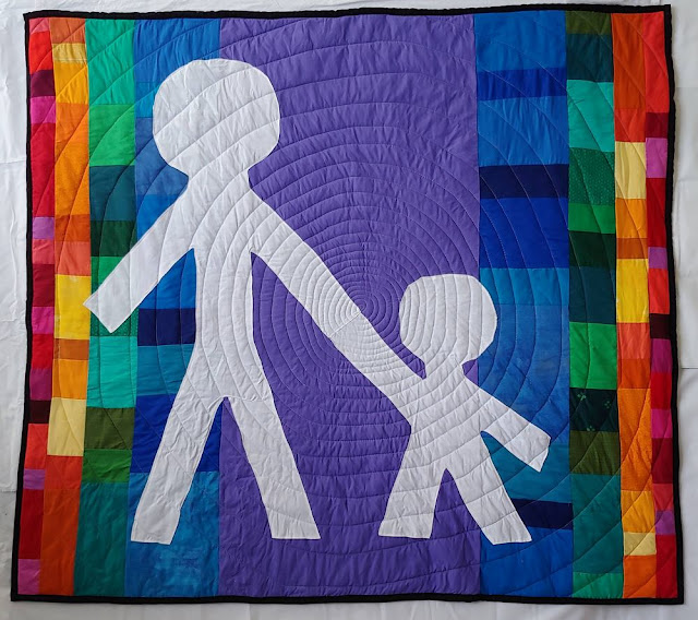 This quilt (72" x 78") was made over several months of 2018, using lots of special scraps and brick by brick improvisation, which I used to teach. It was all about creating a seamless transition between each color. When you look at the sky, do you ever wonder how those color change? I do, constantly!