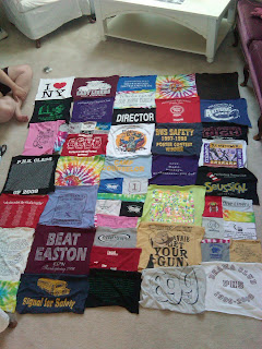I had a TON of t-shirts from high school/middle school that were just sitting in my drawers, taking up space. I heard about the ingenious idea to make them into a quilt - but how? I did some research online and found out that for the amount of shirts I had, I would easily have to pay 500 dollars for a quilt. Psht. I don't have that kind of money, and I had a whole boring summer ahead of me. What to do?