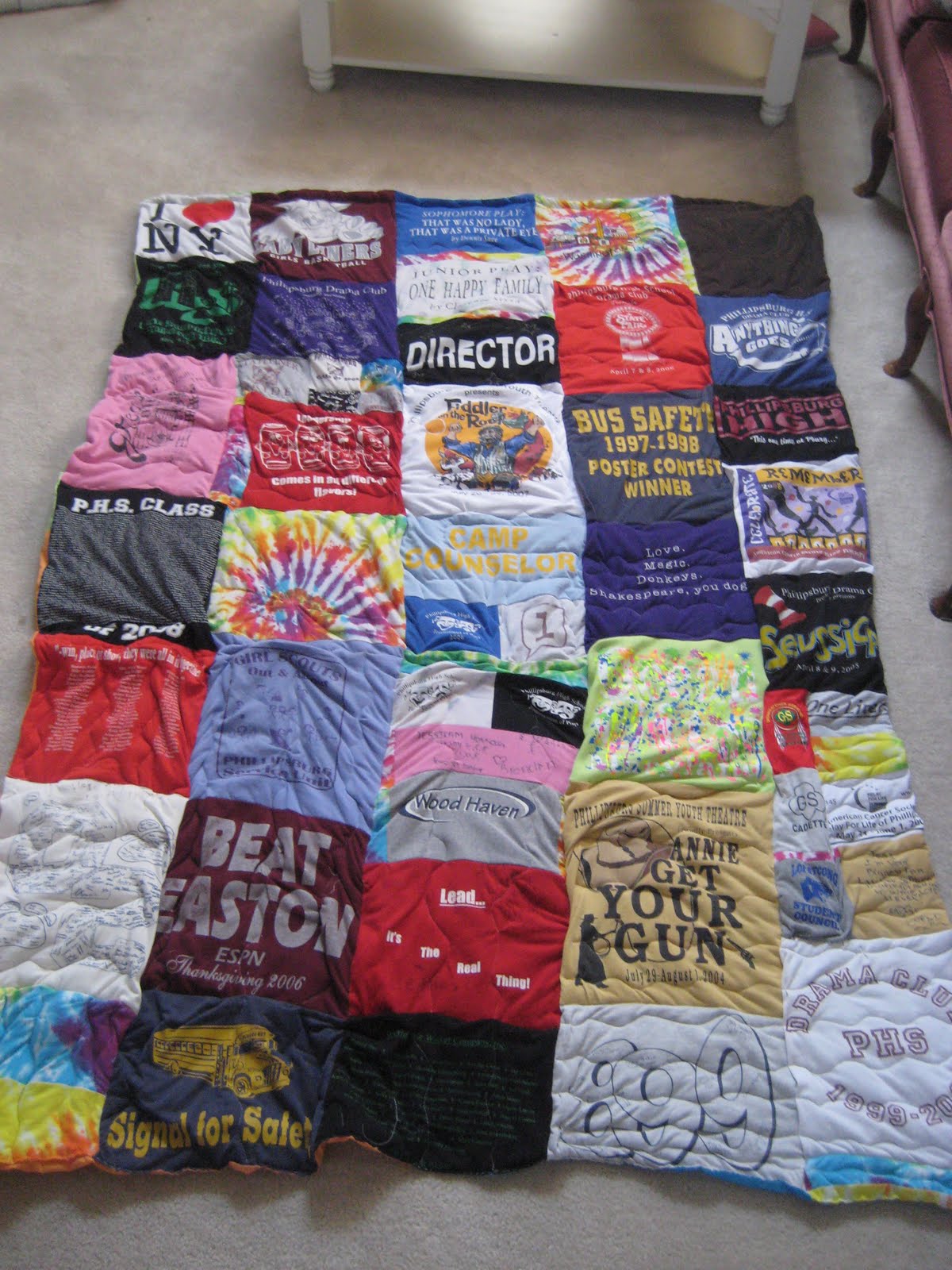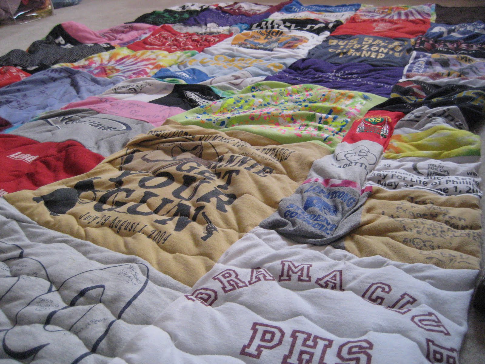 I had a TON of t-shirts from high school/middle school that were just sitting in my drawers, taking up space. I heard about the ingenious idea to make them into a quilt - but how? I did some research online and found out that for the amount of shirts I had, I would easily have to pay 500 dollars for a quilt. Psht. I don't have that kind of money, and I had a whole boring summer ahead of me. What to do?