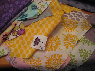 2. On that same subject - learn how to match up fabrics - both colors and patterns. Some of us come with an innate sense of what matches and what doesn't. I know I sometimes have problems with matching up patterns, but buying lines of fabric can help with that. Or, just lay everything out on the table and get a second opinion! =P And practice. I got a lot better - below were my original picks for the Mug Rug Swap Adventure that is ending soon (more pictures of the final mug rug on the way!) Some of them are the "It's a Hoot!" line, but not all.