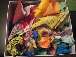 4. Save your scraps. Once you buy your fabric (and Rebecca does a great job of elaborating on how much fabric you should buy for a project, and what kind), you will most likely have some scraps. When I first started quilting a year ago, I would generally throw out the smaller pieces. I really regret that. Now, if I know it can be sewed or appliqued somehow, I save it. The packrat in me came out, but hey, you'll save money, AND I just love using the same fabric for different projects! Plus, I love all the pictures around blogland of people organizing their scraps into glass jars - I'm going to be able to fill jars by color very soon!