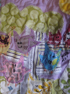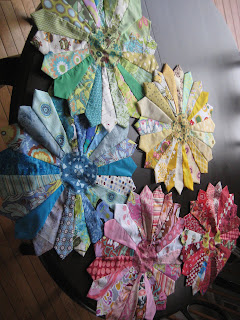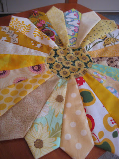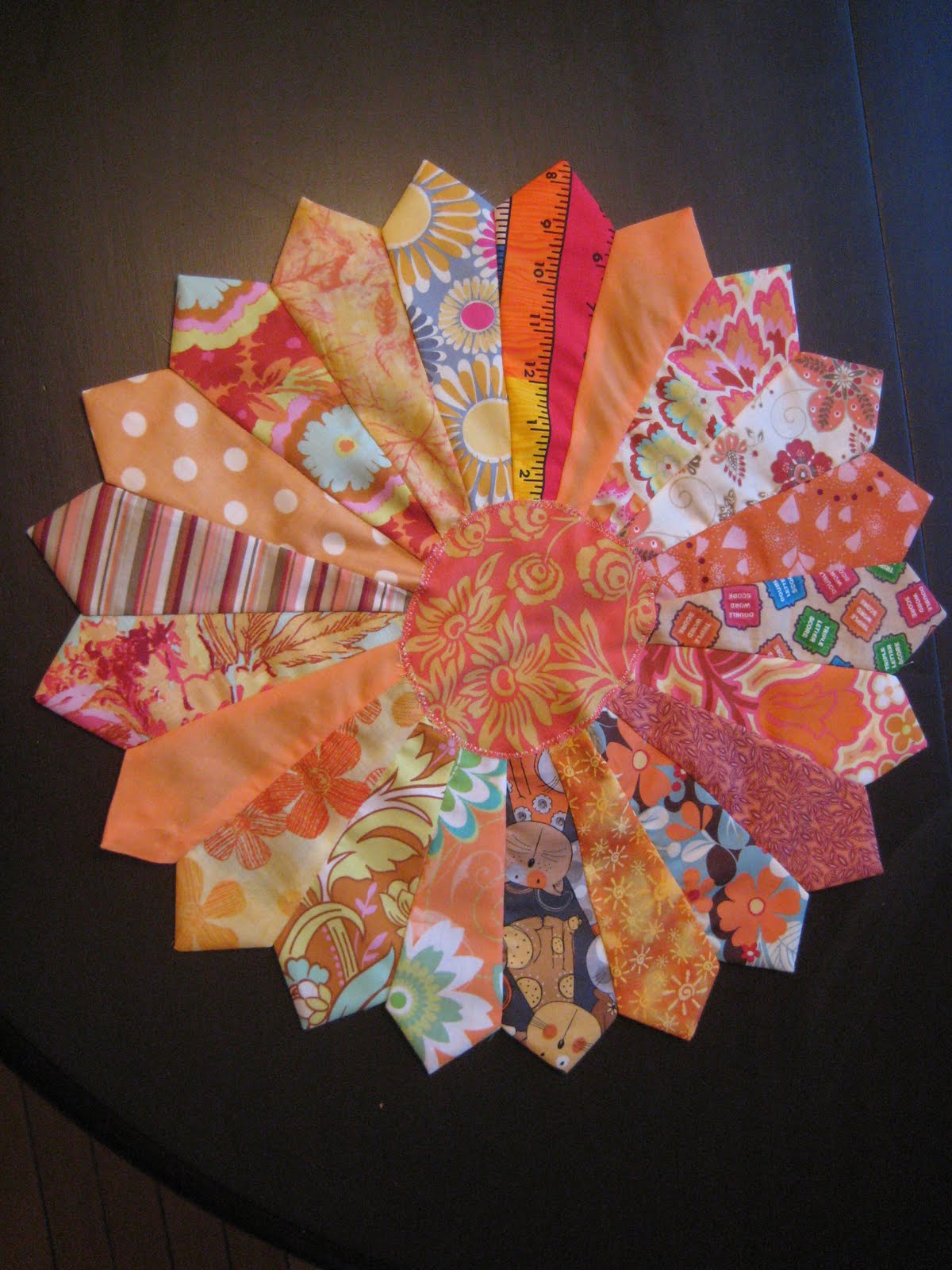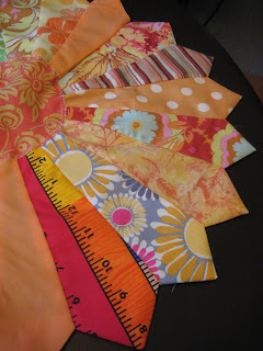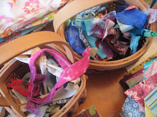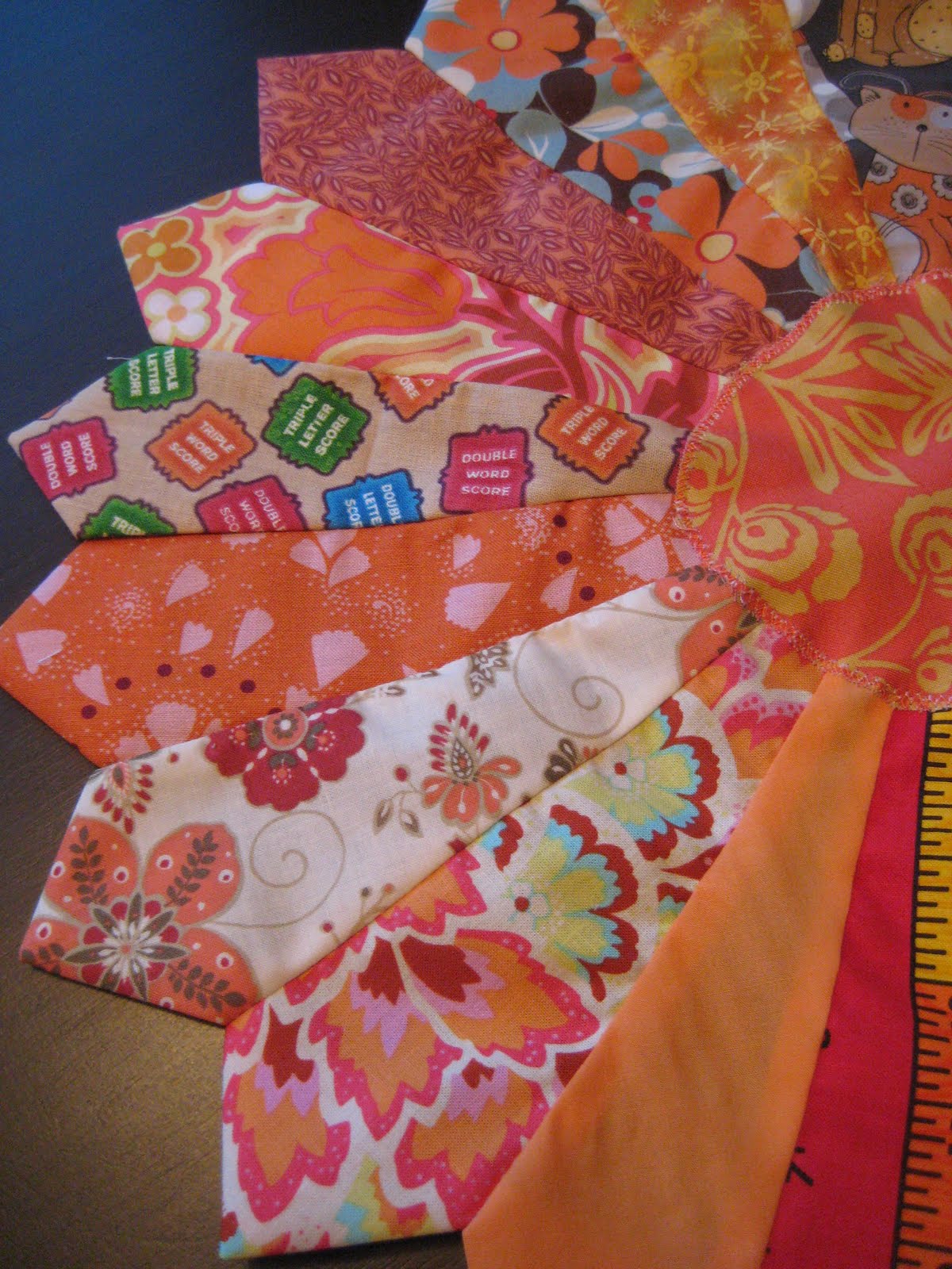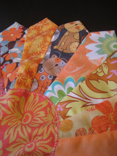 4. Save your scraps. Once you buy your fabric (and Rebecca does a great job of elaborating on how much fabric you should buy for a project, and what kind), you will most likely have some scraps. When I first started quilting a year ago, I would generally throw out the smaller pieces. I really regret that. Now, if I know it can be sewed or appliqued somehow, I save it. The packrat in me came out, but hey, you'll save money, AND I just love using the same fabric for different projects! Plus, I love all the pictures around blogland of people organizing their scraps into glass jars - I'm going to be able to fill jars by color very soon!