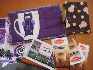 2. On that same subject - learn how to match up fabrics - both colors and patterns. Some of us come with an innate sense of what matches and what doesn't. I know I sometimes have problems with matching up patterns, but buying lines of fabric can help with that. Or, just lay everything out on the table and get a second opinion! =P And practice. I got a lot better - below were my original picks for the Mug Rug Swap Adventure that is ending soon (more pictures of the final mug rug on the way!) Some of them are the "It's a Hoot!" line, but not all.
