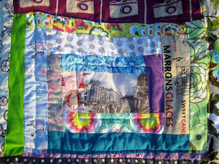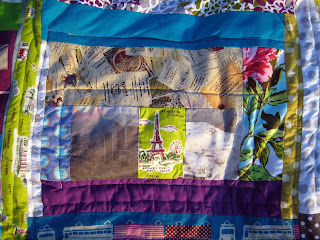 This is another Paris block - she took a lot of pictures from the top of the Eiffel Tower, so I put a print of the tower in the middle of two of said pictures.