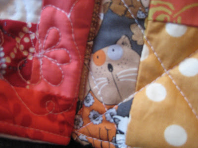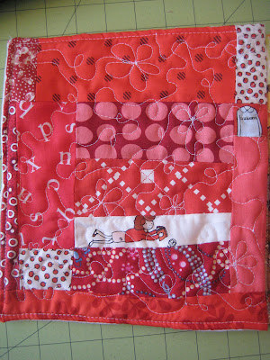 7. Quilt each block as desired. I wanted to do a different design for each one, so I got out my FMQ machine attachment or foot, whatever it's really called ;) , and got to work.