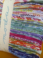Hey you! The one covered in thread and nursing a case of FMQ arms (you'll know what I mean if you've FMQed a medium/large quilt)! You were going to make quilts out of us - we're still sitting here! Pretty, in Moda ribbons, we know, but still uncut!
