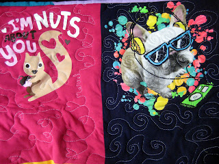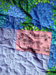 I quilted the names of the kids into their quilts. It makes me so happy that I've been able to improve so much with FMQ over the last year. T-shirt quilts, although tough to quilt because of bulk, are not a huge deal anymore.