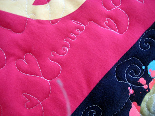 On this one, I got really creative. Hearts, swirls, flowers, waves, you name it. Also, a scrappy purple/blue binding (which you can see on some of the other photos).