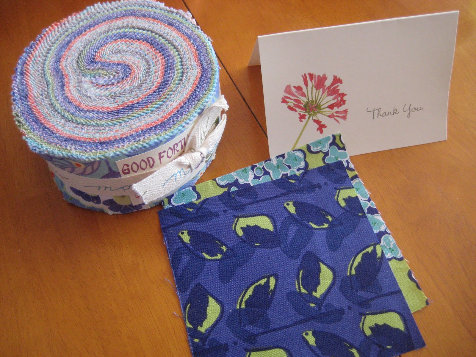 Fabric deliveries via The Intrepid Thread! I love Julie's shop and I regularly find myself stalking her store/blog just to see what's there... she includes a thank you card with a purchase and two charm squares (I was delighted to see purples from the Happiness line!) Thank you Julie!