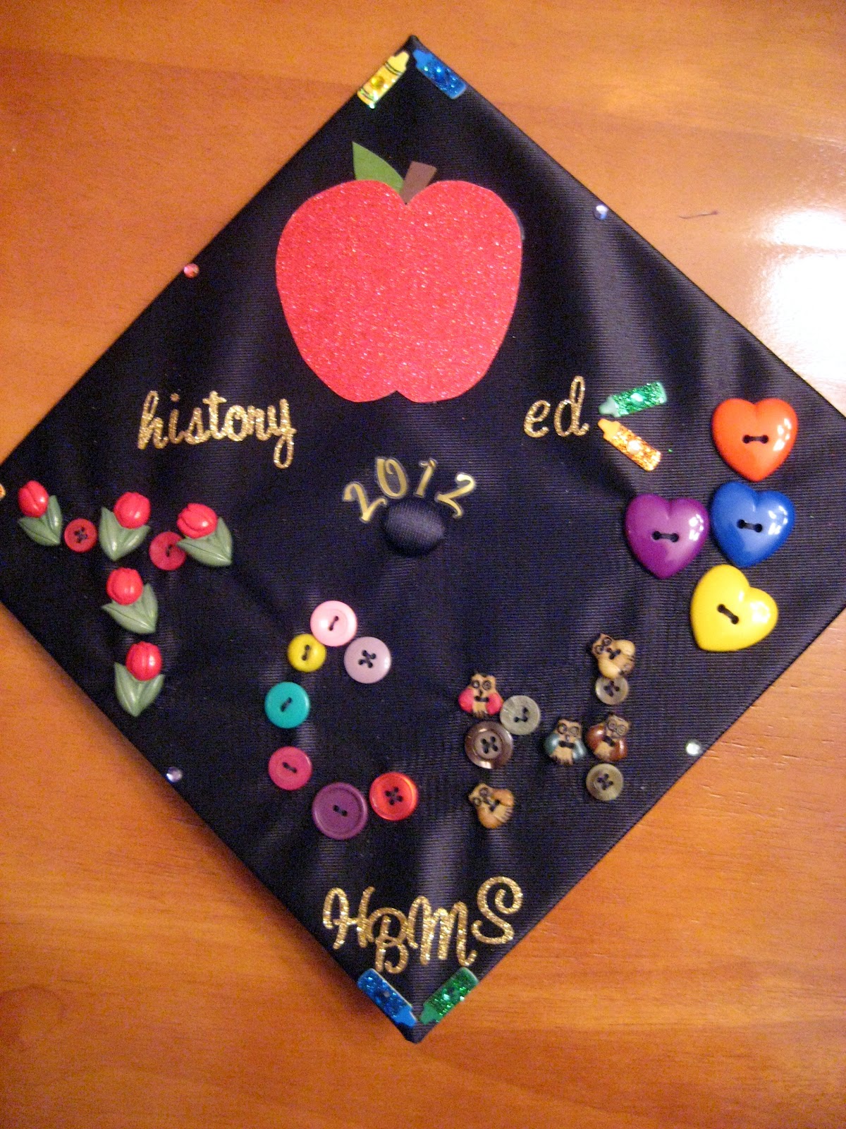 Here's my grad cap! I ended up using some of the ideas given to me in the contest, but the button thing was a sudden idea.
