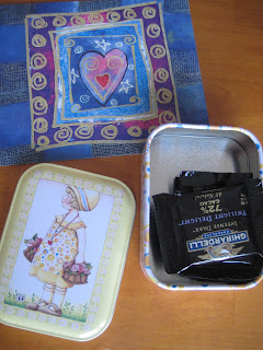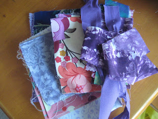 She also included a very thoughtful card, which I am saving, and a tin of dark chocolates, as well as a huge pile of purple scraps. I'm in heaven! Thank you SO much, Sara!!!
