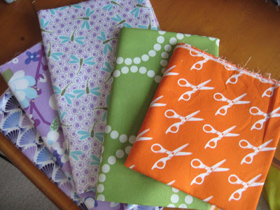 -Got a beautiful swap package from my friend Sara (go visit her - she's wonderful :) ). We told each other some of our favorite fabric lines. It was so much fun to shop for someone else and wait in suspense to see what she picked for me!!