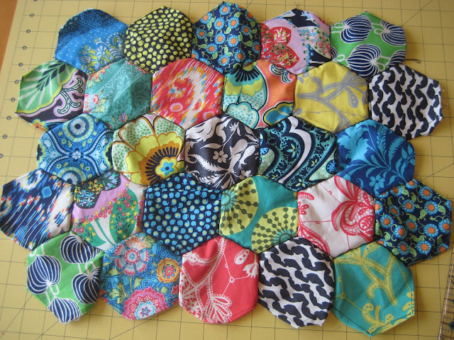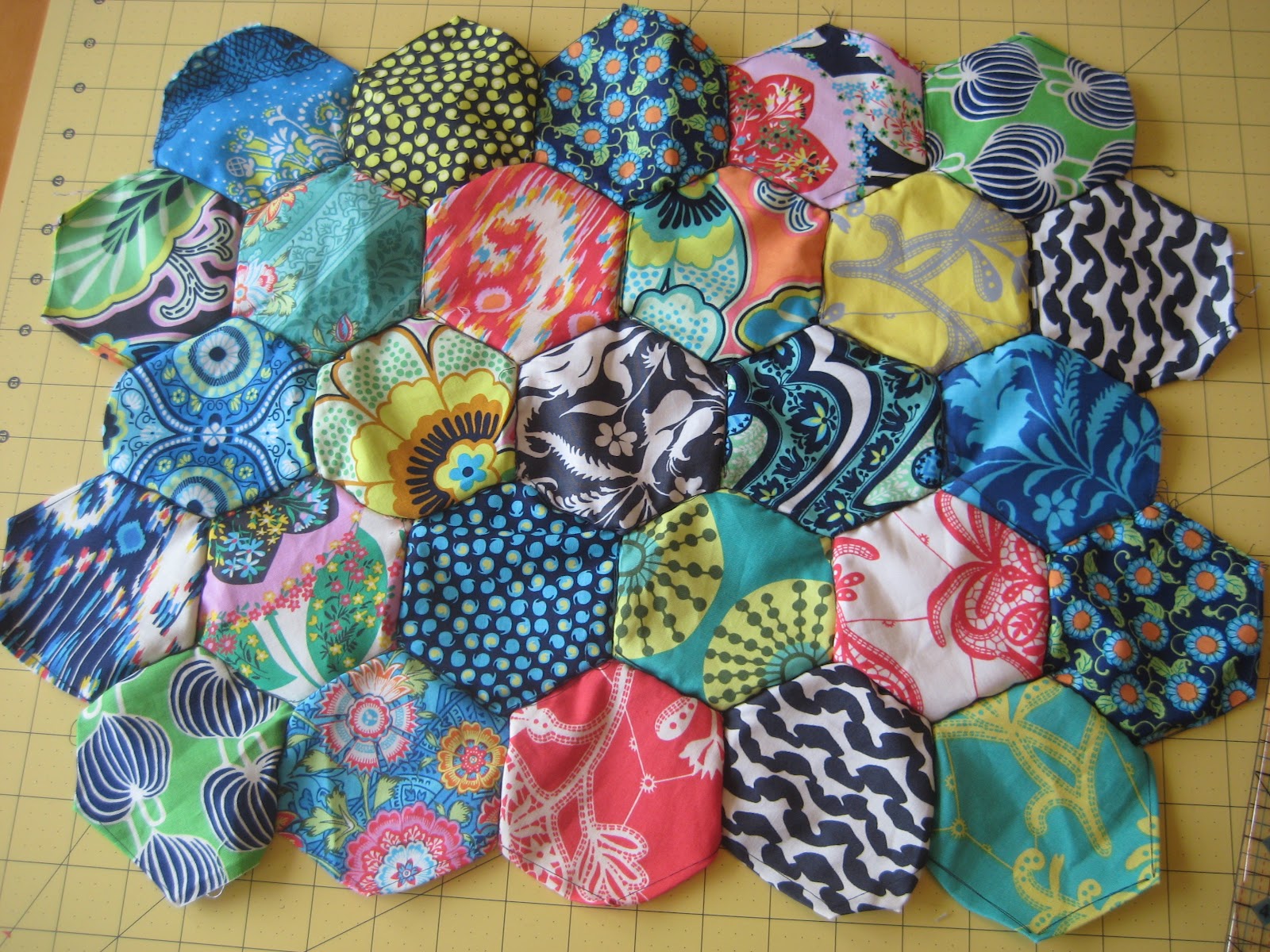 On to the quilt. This idea started festering in my brain when I found out about my soon-to-be sil's pregnancy. Actually, originally, I intended to use a FQ bundle of Valorie Wells's Wrenly for that quilt, but somehow, the bubble idea popped into my head. I wish I could tell you how - I honestly have no idea. But when I thought of it I LOVED the idea as a baby quilt.