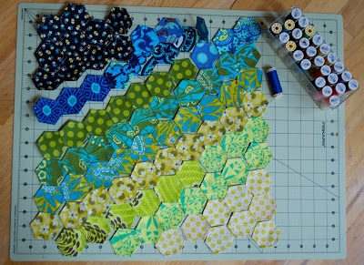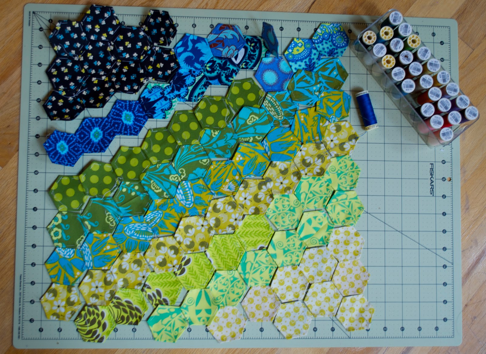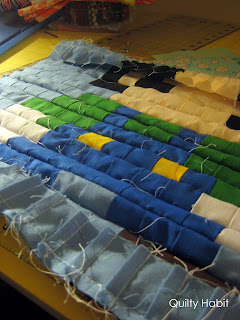 Many of my fill-in fabric scraps were the solid green fabric scraps - I wanted to give the whole thing a pop!