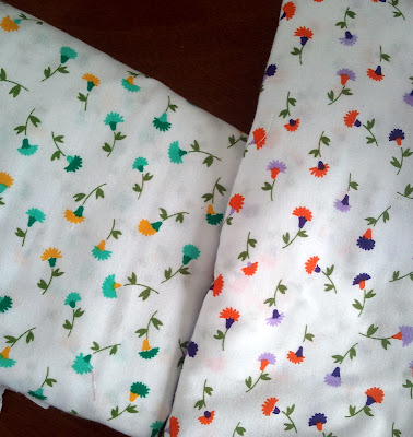 I also got these great vintage sheet-like fabrics - they are a bit heavier than sheet cotton, though. I LOVE them though I don't have any plans yet... they were a DOLLAR A YARD. WHAT. I finished the bolt for each. I'm thinking right now they would make a really great binding.