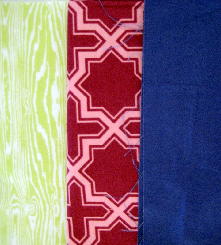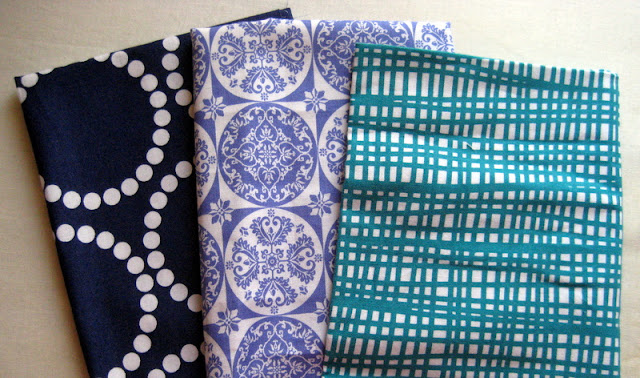 Dark blue to blue to green - the right fabric is actually more turquoise than it looks (it doesn't have to be exact!). As you can see, analogous color schemes are easy to put together and really make your quilt beautiful.