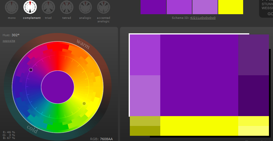 This is one of my favorite combinations, and the one I've been experimenting with the most! I never would have picked the scheme I did without playing around with the color wheel. This one is called "accented analogic" on Color Scheme Designer 3. Don't let the complex name scare you - it's awesome.