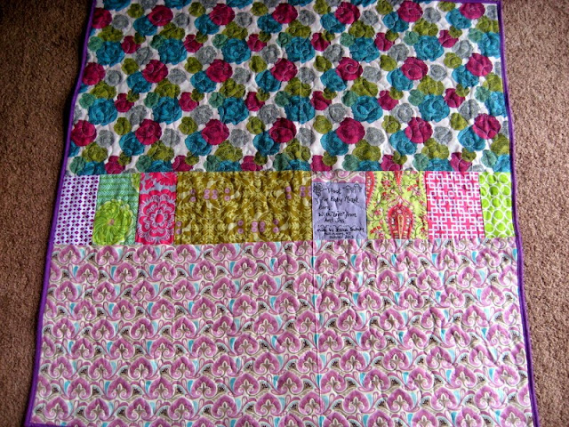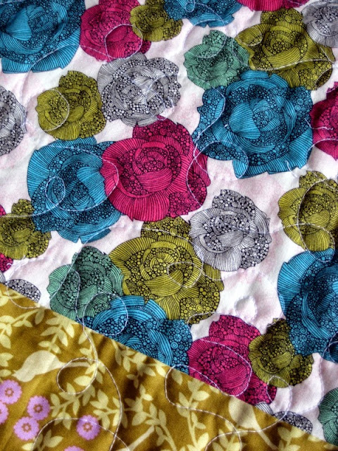 The quilting was the easy part :) I wanted whimsy, so I went with loops and stipples. Usually I would take more time to custom quilt, but a) there was no time and b) all-over, I think, suited this style quilt the best.