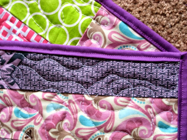 Alright, so guys, I've tried the machine binding thing before, and it just DID NOT work for me. I've tried it at least three times with different tutorials and I've been disappointed by the results (probably a mix between me and somewhat confusing directions). NOT this time though; my friend Ashley just came out with a very clear and super short tutorial on machine binding. And guess what? I'm really proud of it. I'm going to keep practicing because it's so. dang. fast. I do like the hand sewing to the back, but after a while, my hands start to hurt, even when I split it up... AND it takes about 4 hours to hand sew a lap size or larger. I'll take 30 minutes at the machine, thank you very much!! (Ashley, you are officially the best!).