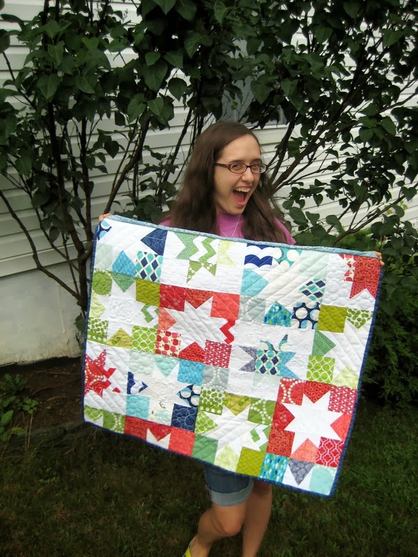 3. Awesome pictures: There are tons of great tutorials/posts out there about taking great pictures. It's become one of my favorite parts of the process - when there's a finish, I need to figure out where a good picture can be taken. By the way, I don't use a fancy-schmancy camera - I have a pretty old Canon Powershot, and sometimes I use my phone (though lately the husband has been begging to take pictures with his fancy-schmancy camera, so I let him. Almost all the pics in this post were not taken with it). I always, always, always go for the outside shot for finished quilts, because nothing looks better on a quilt than natural light (*this is my opinion but lots of bloggers agree!). Sometimes I go for the artsy photos, and sometimes the straight on ones look best. Take a whole bunch, invest in some fun quilty partners to take the pictures/hold up the quilt, and you've got yourself a fun photoshoot. Don't be afraid to show the "behind the scenes" - that's what makes your blog fun to read!