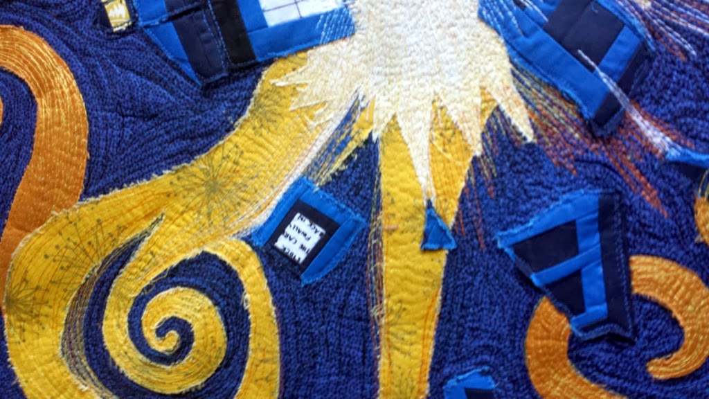 Look at that amazing applique and thread painting... and is it bad I knew that yellow fabric was from Comma?