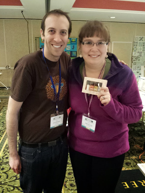 Andrew, the president of the Philly Guild, won the Lizzy House Soak nail polish (lol) and he knew I was dying to get my hands on some, so he gave it to me!! <3 I kind of look a bit confused here, and my hair is a mess, but you get the idea! He's a riot. And we worked on AMH feathers together. Thanks Andrew! Looking forward to working with you in the future as presidents!