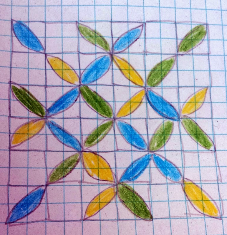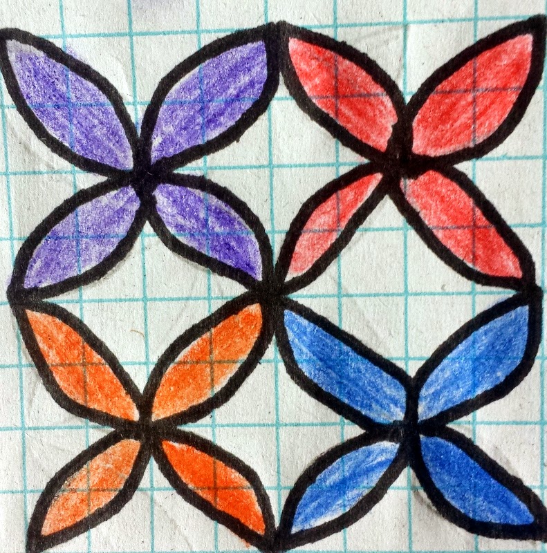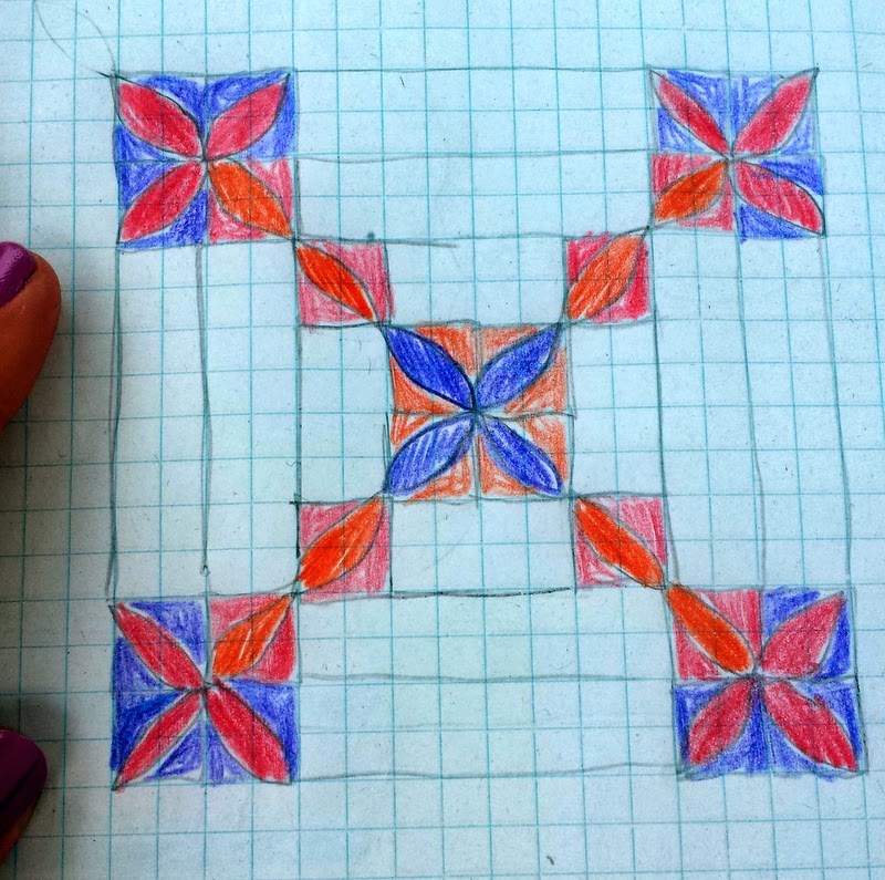 1. Figure out your medium. What do you work best on - graph paper, Electric Quilt software, sketching on the computer, back of your grocery list? Whatever it is, figure out your favorite way and get set up. I personally love my huge book of graphing paper with sharpened colored pencils. Give me a comfy spot and I'm set!