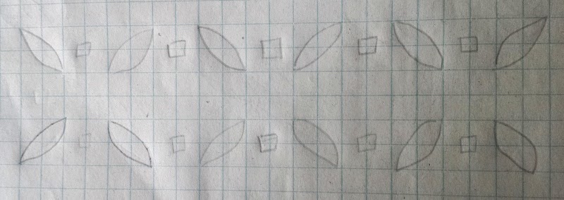 Typically, orange peels are set in groups of four, and the sewist repeats them to achieve a pattern like this: