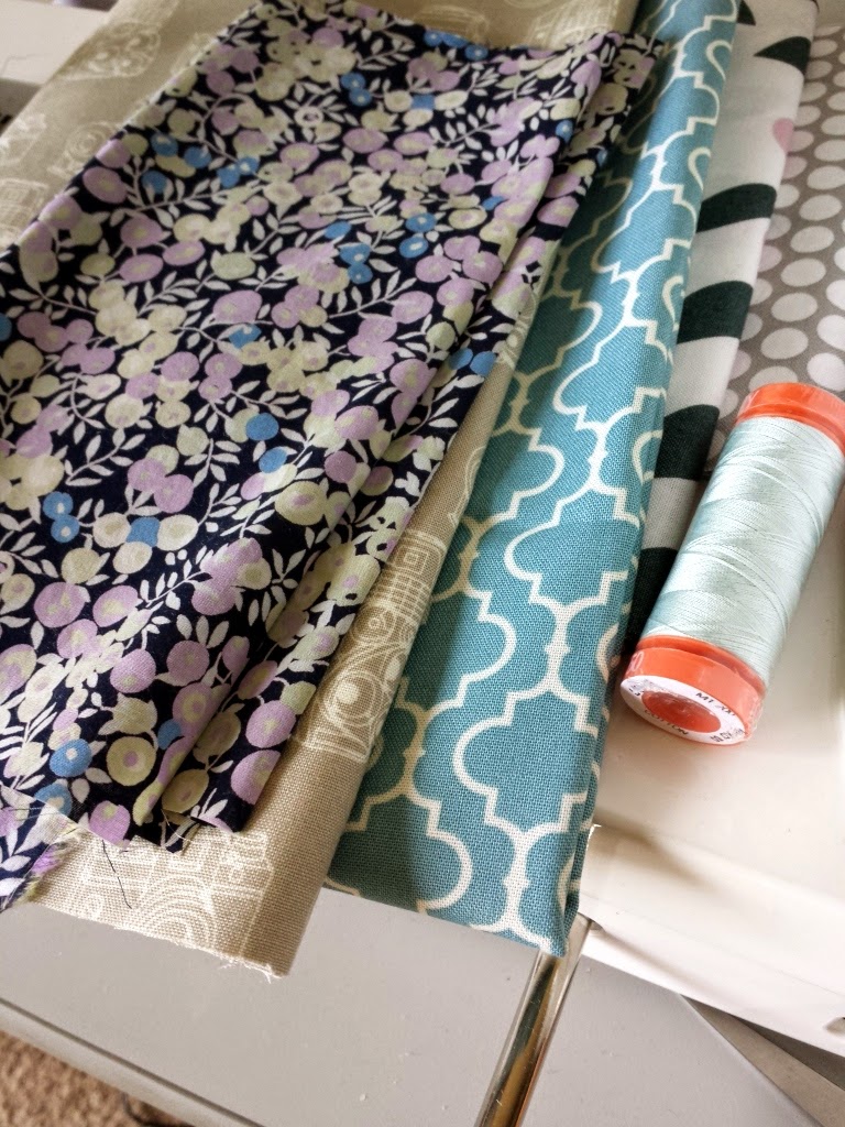 Last month, Laura sent me Ashley's quilt along with some beautiful fabrics for me to enjoy (thank you again!!). I was thrilled because the fabrics were not my typical colors, and I don't have any of these particular prints in my stash. Most excitingly, she included a nice panel of Liberty from her recent garment making - and I was stunned. I've never owned any Liberty and it is every bit as soft and beautiful as it sounds!