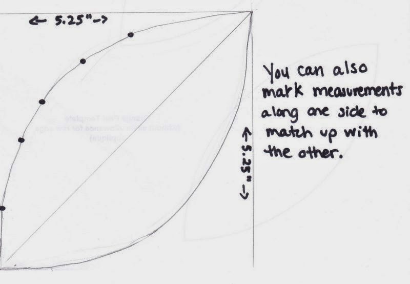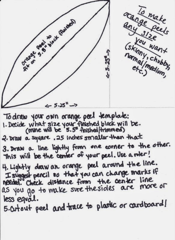 - For any method of attachment: you can draw/design custom-sized orange peels (skinny, chubby, just in the middle, etc.). Emily explains this at the beginning of her tutorial and I've made a visual representation and written out directions (below) that explain how. I hope it is helpful. This is how I made my baby quilt - it works! Just as a note - my background squares are 5" finished/sewn into the quilt. When I say "finished" on the explanation, I mean trimmed/ready to sew into the top. Hopefully that makes sense.