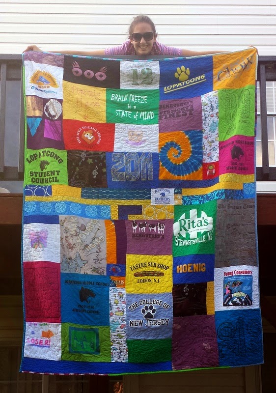 Oh yeah you can totally tell she loves it! And how fun to have her involved in the process. Commissioned quilts are so hard to price! I get so nervous telling someone how much I'd charge (an arm and a leg, haha). I've still never made a tshirt quilt, though I have one standing offer to make one for a friend.
