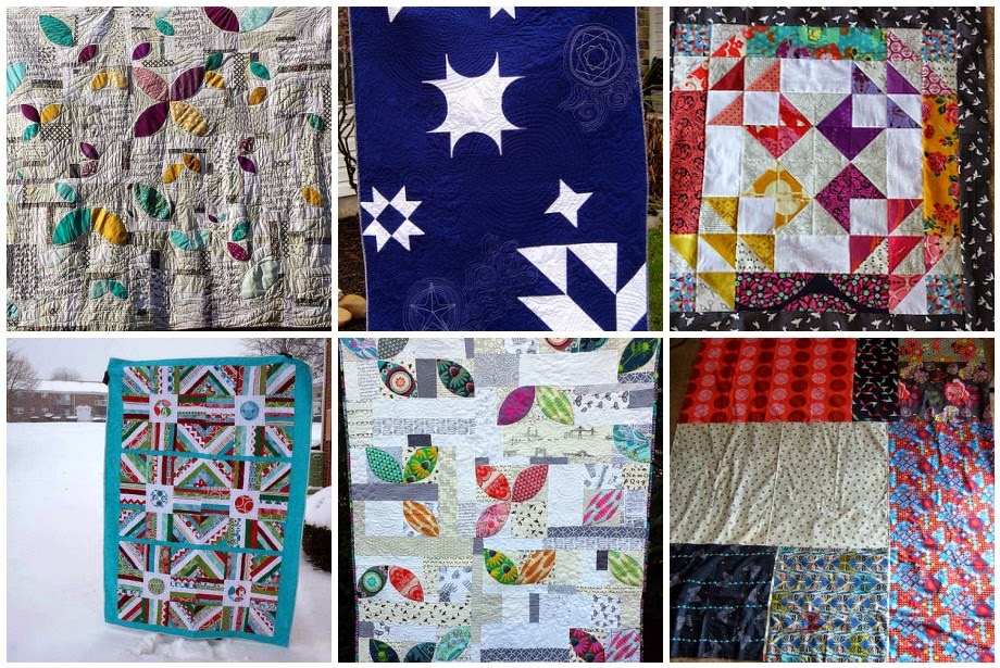 1. Breeze, 2. Shirley's Stars, 3. Medallion center - original design, 4. "Blizzard" string quilt, 5. "Scatter" - orange peel baby quilt, 6. Back of Sister's Ten Quilt