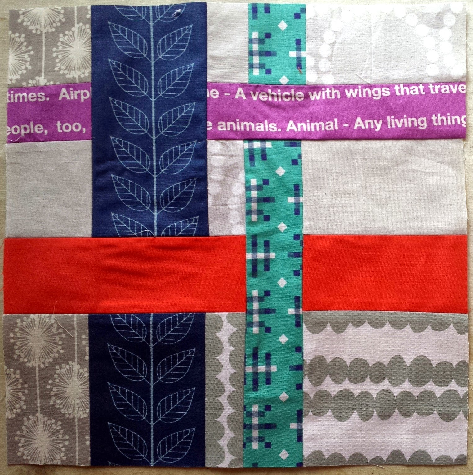 ReplyDeleteI like your fabric pull, and I *love* the text fabric in your first block. I spy airplane! Yay! :)
