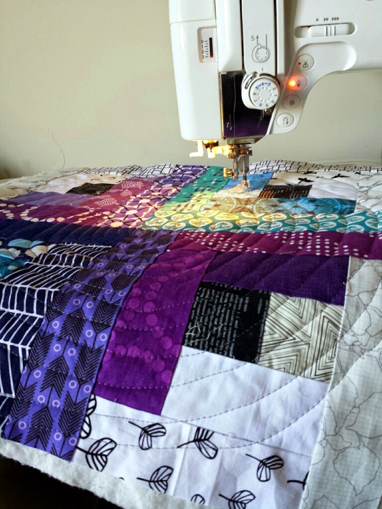 I quilted a spiral from the middle, using my FMQ foot. While my circles weren't perfect, I was still pleased with the results.