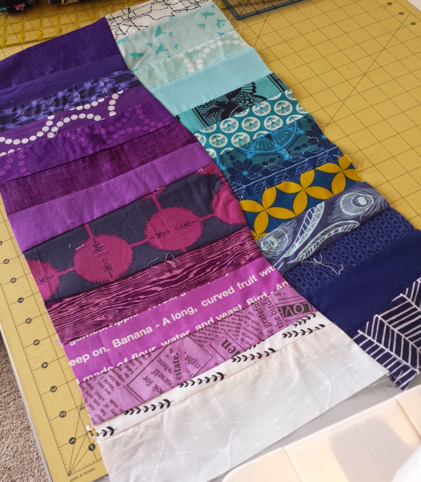 Eventually, the "curves" theme popped into my head. This quilt will be like the kitchen sink of curve quilts. I even made a Pinterest board to organize my thoughts and give my friends some ideas. I started this week with my scraps and made this improvisational curve wave. I will make at least two more additions to my starter before passing it on in Austin (one will probably be a drunken star), and I seriously can't wait to see everyone else's starters!