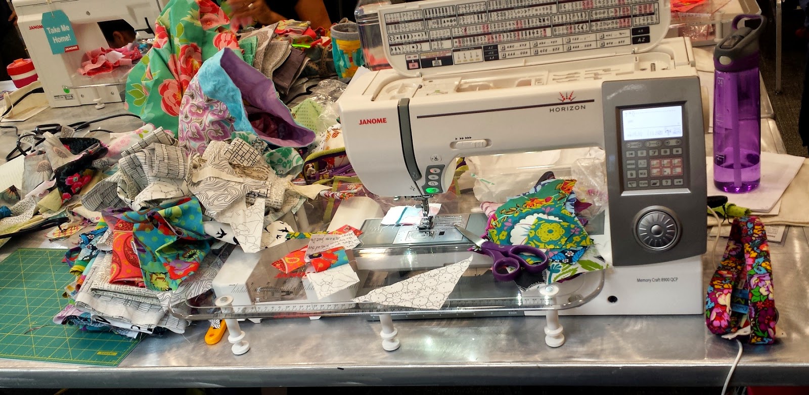 When I was packing, I had no idea which fabrics I would want to use in three days time, so I packed a good amount... so much that Anna Maria let everyone in the room know that if they wanted to purchase some fabric, they could come over and see me. :P And you know the next day I went to the vendor hall and bought more of her fabric... quilter problems.
