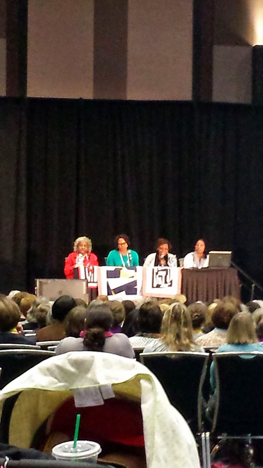 3. I attended the keynote address by the Quilters of Gee's Bend. It was very inspiring to hear their stories (my friend Yvonne has a great detailed recap if you are interested) but for an hour and a half lecture, I was disappointed by the lack of quilts. It was hard to see from the back of the room, but they had brought a few blocks and tops to share; those came out after about 45-50 minutes. I wished there had been some quilts to look at on the huge screens on either side, or that they had talked more about their process. I realize that religion is a huge part of their lives, but it was a bit overwhelming for someone who isn't religious in the slightest to take in. However, on the positive side, their singing was uplifting and their comments often invited chuckles (or full-on laughs) from the audience. It was the most entertaining lecture I attended.