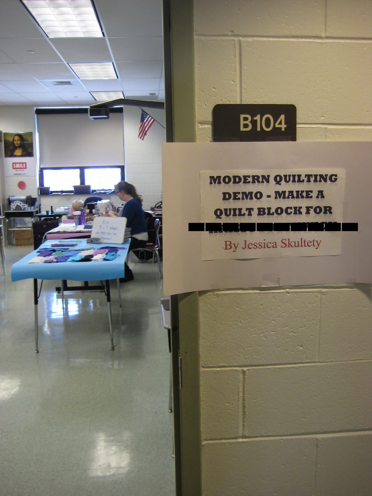Earlier this month, I was given the opportunity to introduce and demonstrate quilting in my community for a second time in my school district (K-8)! For this free event, the PTA requested that artists create a class or interactive project if possible, and, after some thought, I decided it would be wonderful to make a special quilt for a 7th grader at our school who is battling leukemia.