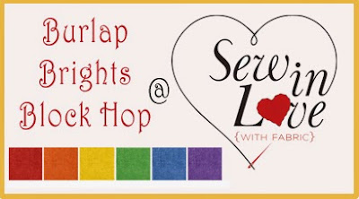 I follow Sew in Love with Fabric by email. Thank you for your block, it is so cheery and "Burlap Bright"!