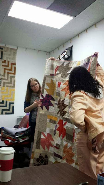 My presentation provides both inspiration and information on the different kinds of improvisation, based on the quilts from QuiltCon 2015 (my personal photos and descriptions) and my own quilts (in pictures and in person). When I was packing up my quilts to bring to the meeting, I couldn't believe how many improv quilts I have! If I cared, I might be embarrassed. ;)