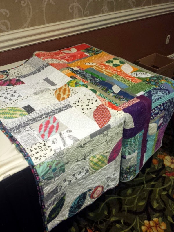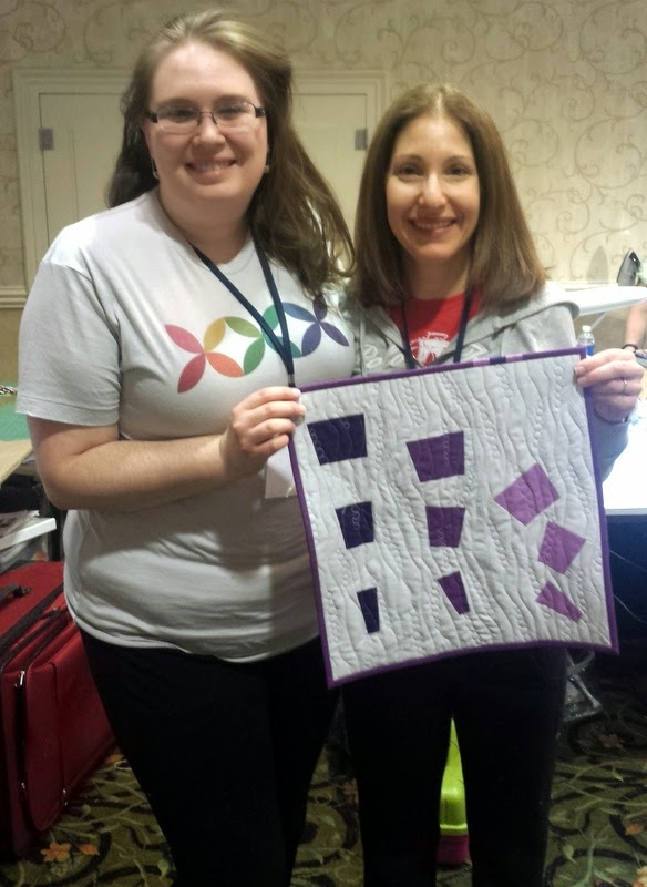 I also worked on the Bright Stars progressive quilt (sponsored by Robert Kaufman - they provided all of the blue Kona fabrics). Can you tell which block I made? (Hint: it's huge and purple!). Janet from our guild won this one - I'm glad I'll get to see it in person again when it's done.