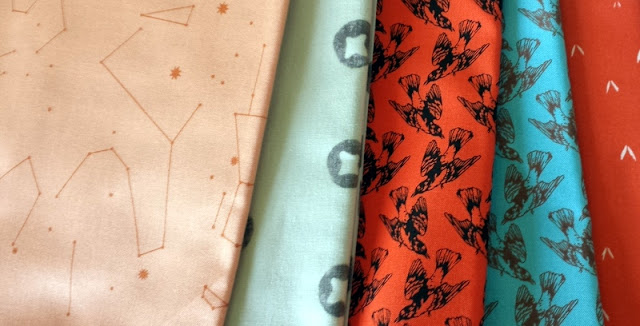 I also couldn't help throwing in a couple of half yards I've been eyeing (they were on sale, too!). Apparently I really like orange and red lately - my stash is happy, too, because I don't have many of these. Do you go through phases of colors you like to buy?